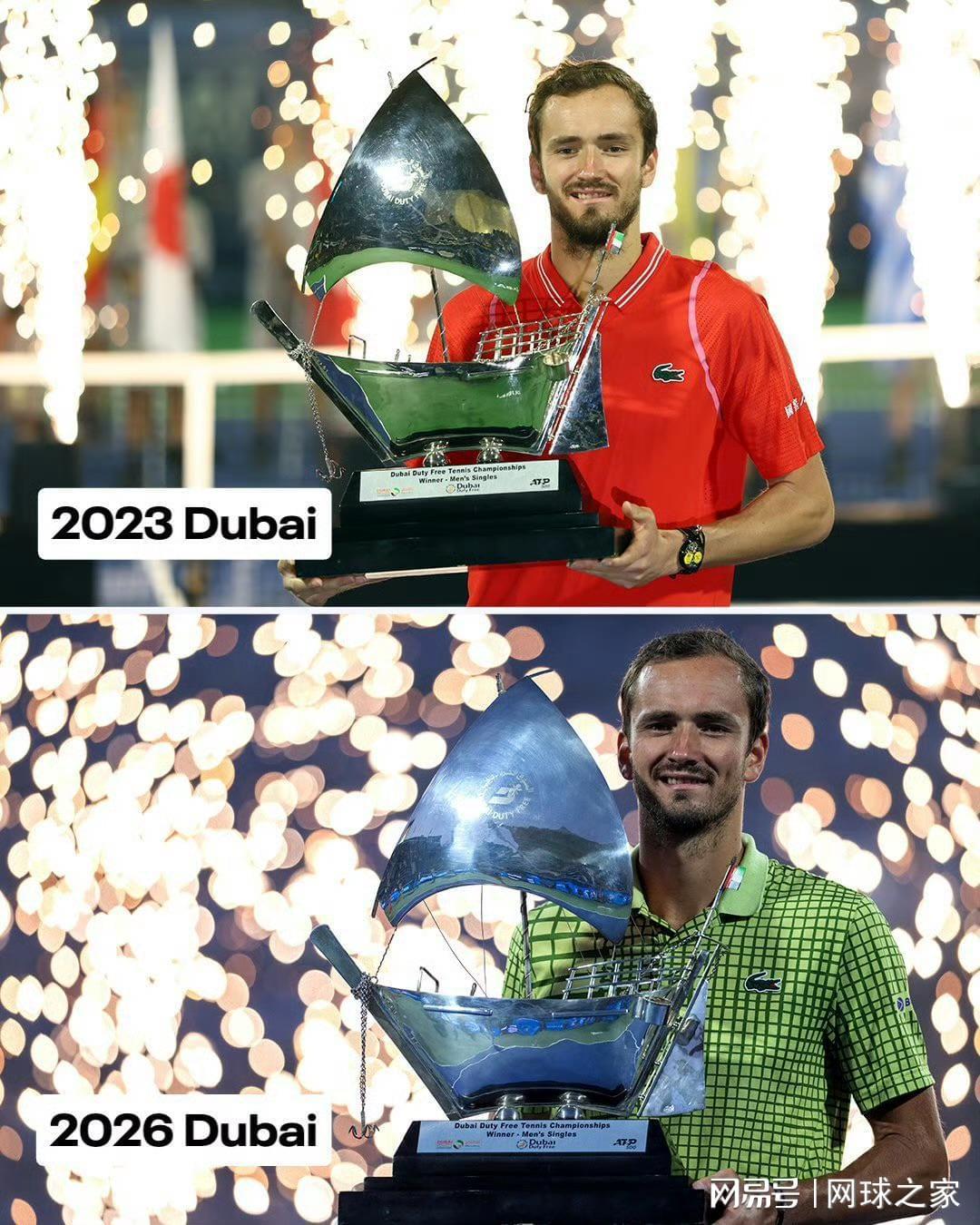 2月28日这一天,梅德韦杰夫以一种极为特殊的方式赢得了个人第23个ATP单打冠军——由于荷兰选手格里克斯普尔在赛前因腿筋受伤退赛,俄罗斯人甚至没上场就捧起了迪拜站的冠军奖杯。