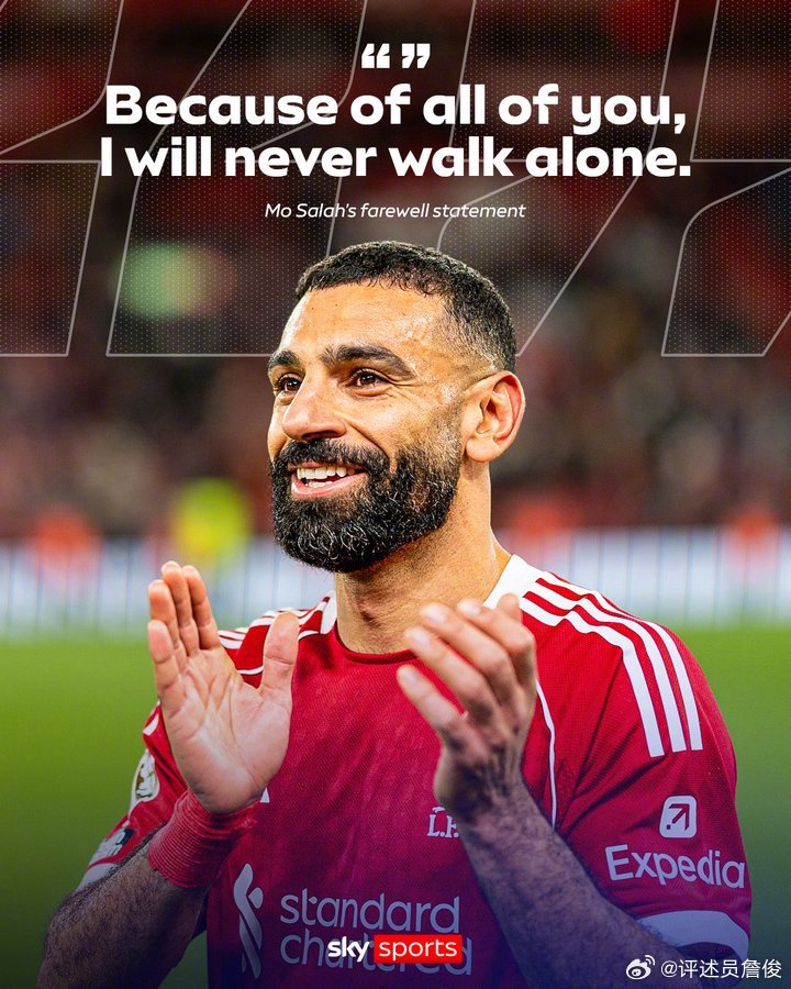正如利物浦队歌所唱:“你将永远不会独行。”这句话如今有了新的含义,无论萨拉赫走向何方,安菲尔德永远是他的家。一个时代落幕了,但传奇不会随着时间褪色。萨拉赫的利物浦故事,将在一代又一代球迷的口耳中,永远相传。